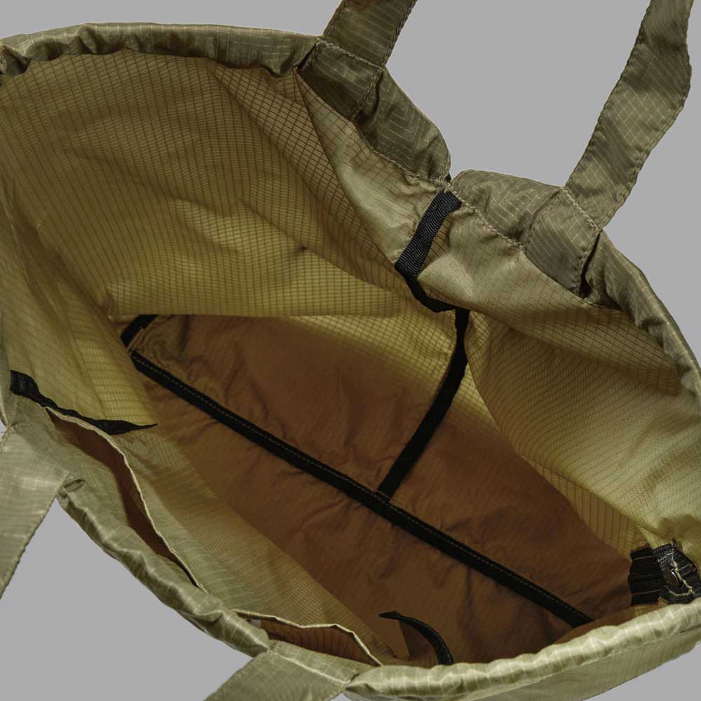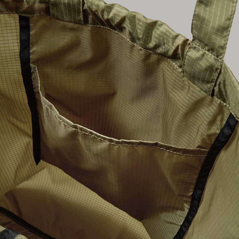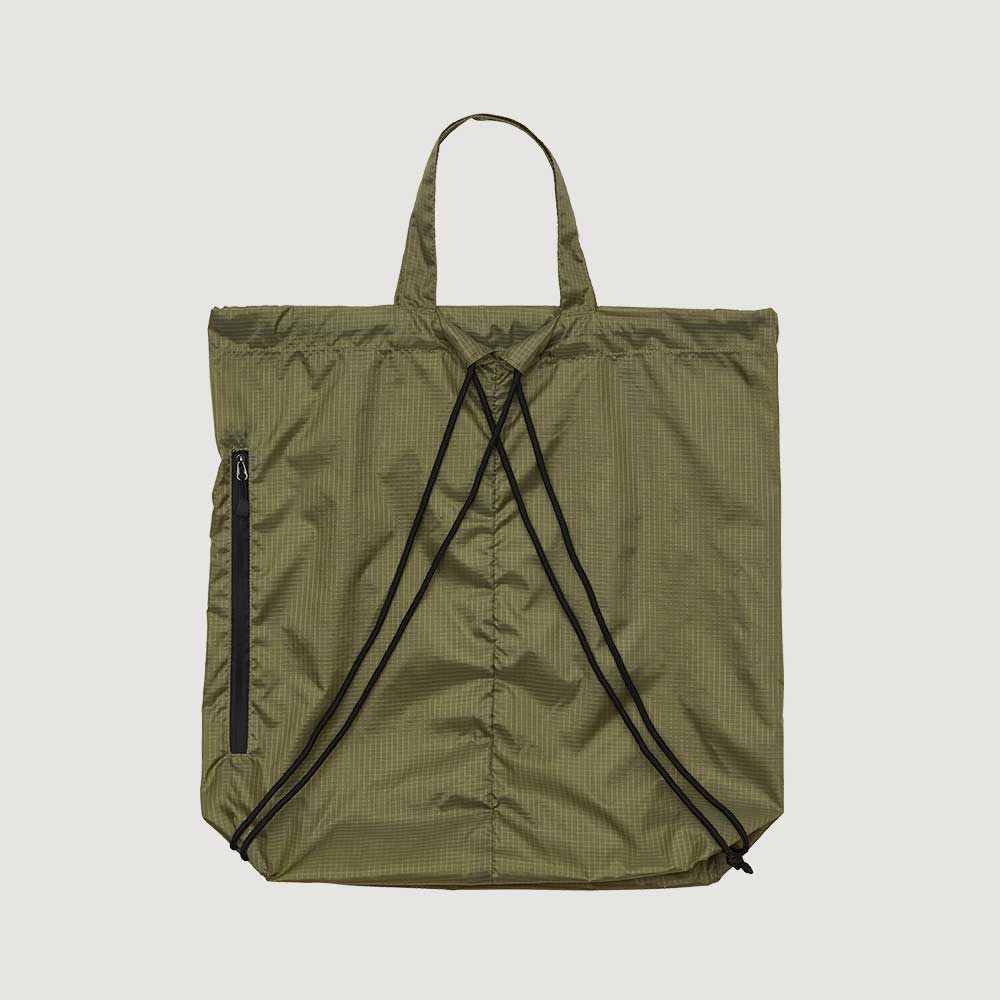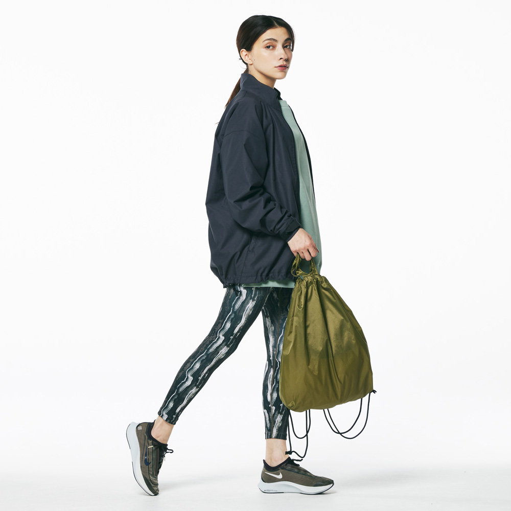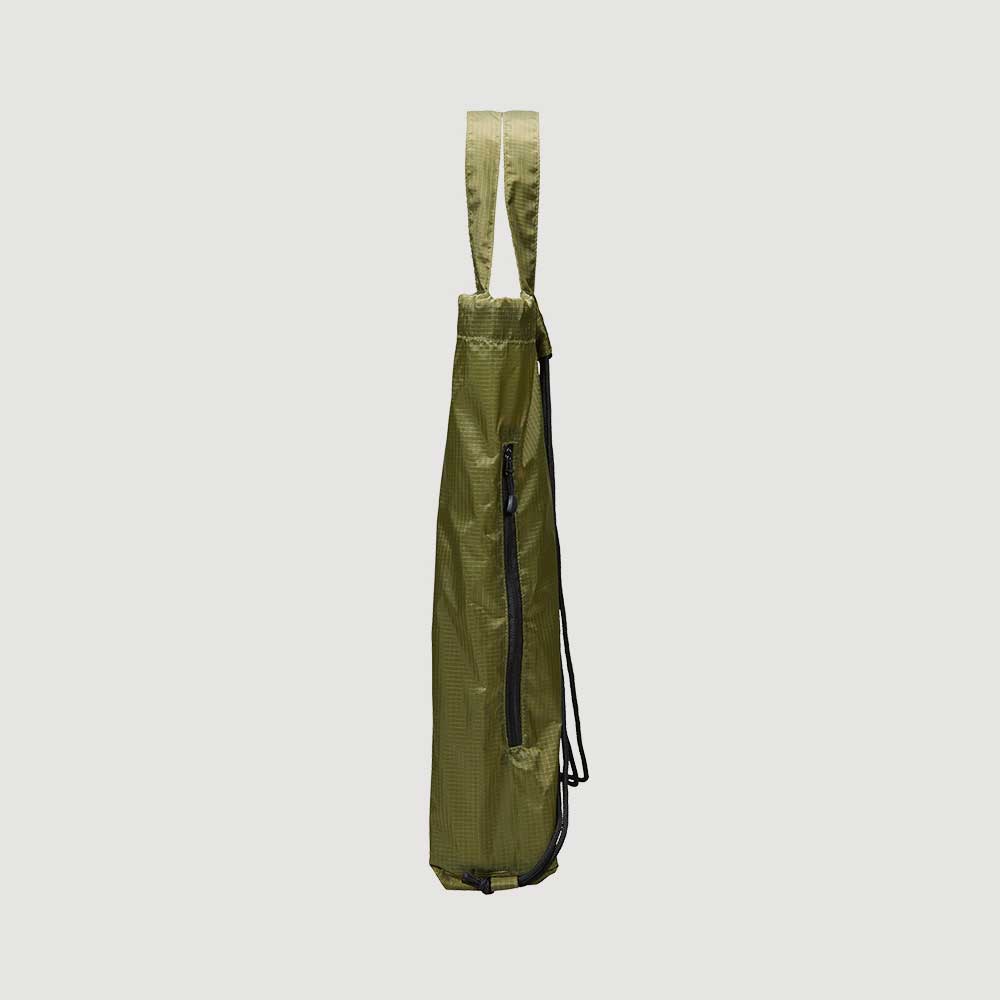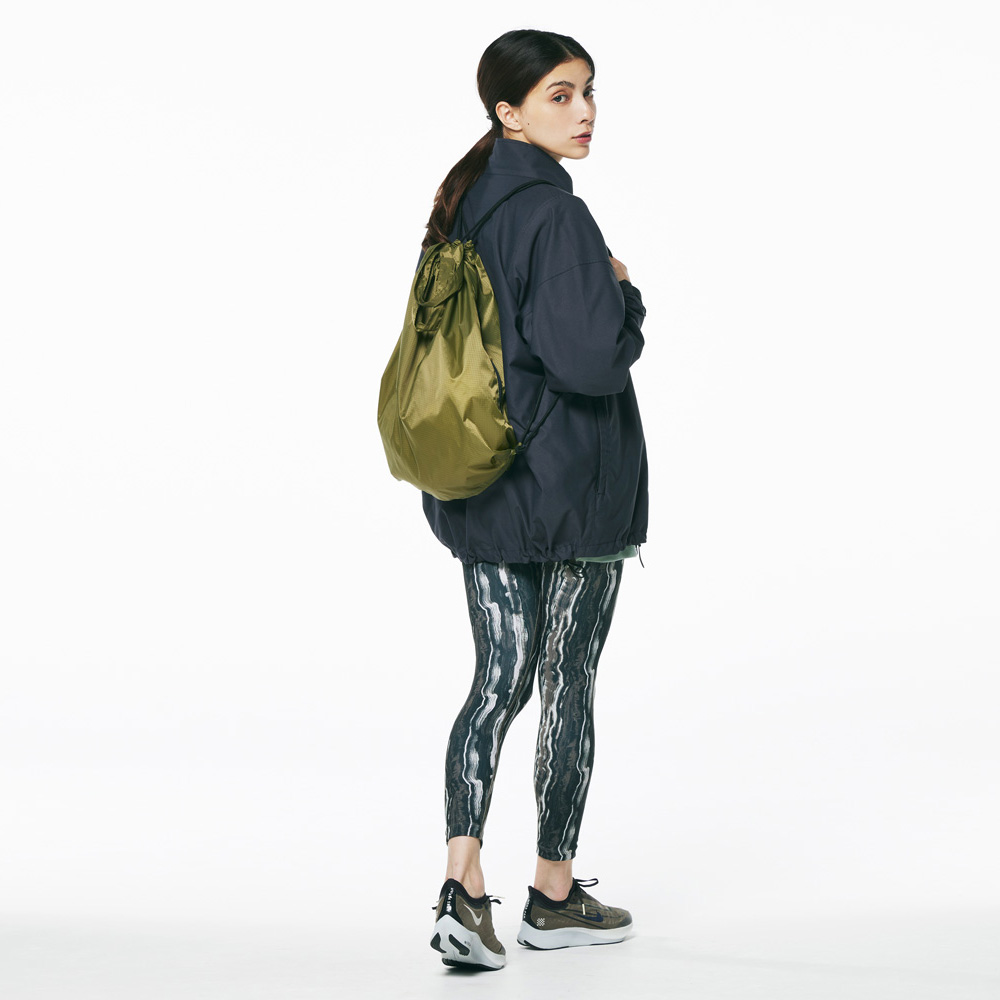 スポーツシーンはもちろん、フィッシングやサウナ、キャンプからシティユースまで、動き回るシーンにはおあつらえ向きの軽量ジムサック。裏側にアクリルコーティングを施したナイロン製のリップストップ生地は、スポーティーすぎずほどよくカジュアルな印象で、耐久性も抜群。サイドファスナーを開けば、背負ったままでも物の出し入れが可能なため、ジョギングやサイクリングなどの合間にもしまったギアをイージーに取り出すことができる優れもの。肩ひもにはタフなポリエステル製の丸ひもを採用したため、いつまでも快適に使い続けることができます。