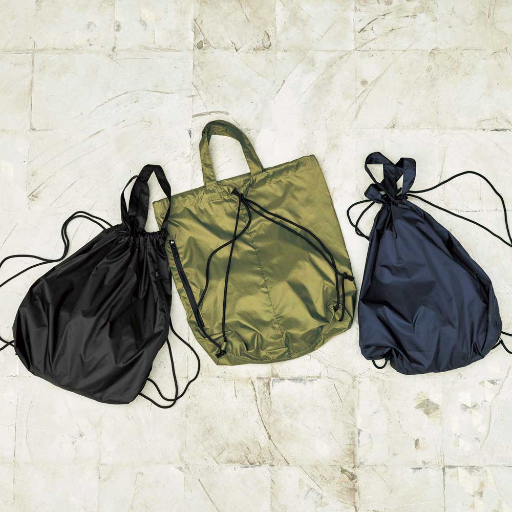 素材:ナイロン 100% リップストップ 〈丸ひも部分〉ポリエステル 100% ※内ポケット付き